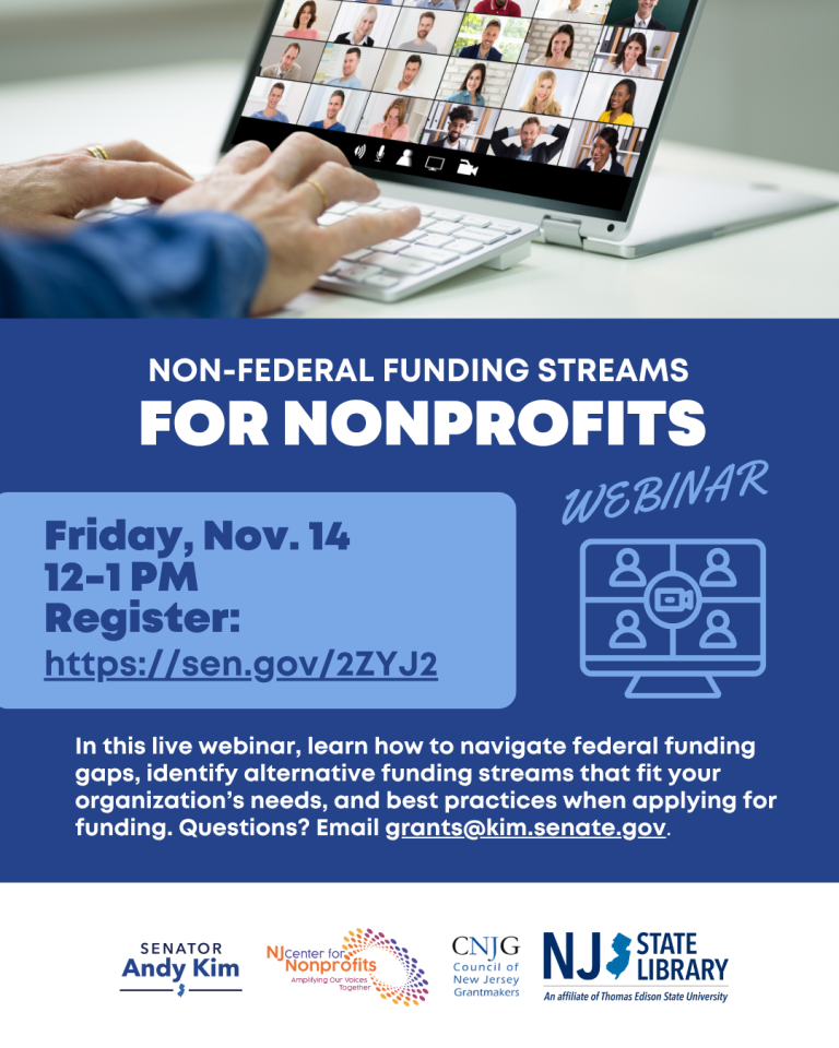- Who: Office of Senator Andy Kim, NJ Center for Nonprofits, Council of New Jersey Grantmakers, and NJ State Library.