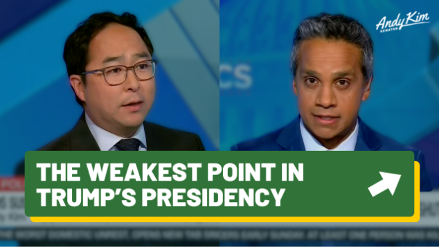 WASHINGTON, D.C. – Today, Senator Andy Kim (D-NJ) joined CNN’s Inside Politics Sundaywith Manu Raju, running through this week’s top headlines and concerns on Americans’ minds right now. From illegal tariffs, escalation in Iran, and American citizens murdered by federal agents in our streets, Senator Kim outlined how Donald Trump is heading into Tuesday’s State of the Union at the weakest point of his presidency.