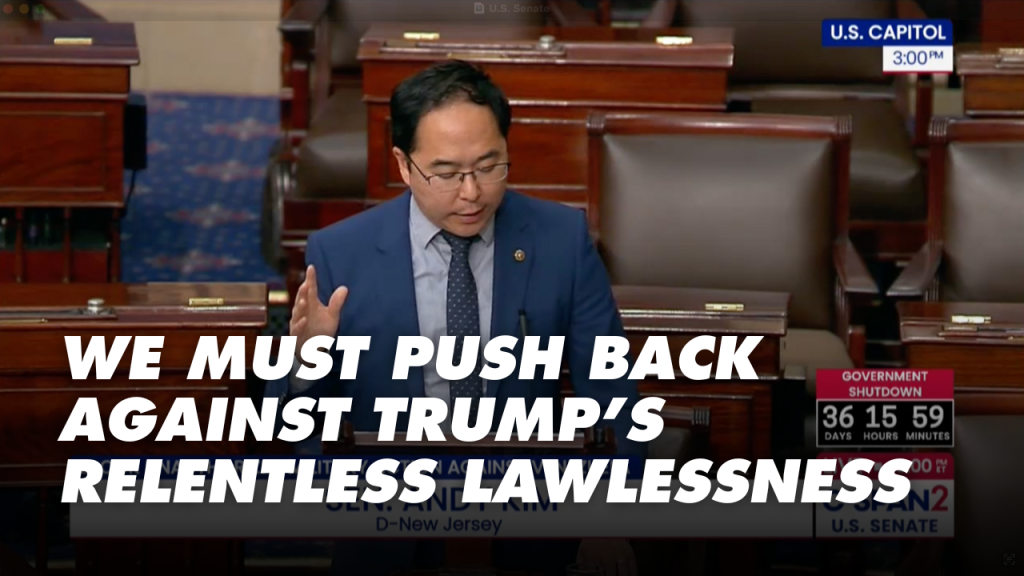 WASHINGTON D.C. – Today, Senator Andy Kim (D-NJ) spoke on the Senate floor to reaffirm that decisions to use military force require congressional authorization and that no president, Donald Trump or another, can decide on their own to use our military to target or kill anyone they simply claim to be a threat. He pushed his Senate colleagues to uphold their responsibility to be a voice for the American people and vote to pass a War Powers Resolution that would block further strikes on Venezuela and prevent the President from escalating tensions that risk an all-out war in the region. Without the necessary legal basis or proper justification to Congress and the American people, President Trump has ordered the U.S. military to engage in 16 strikes in the Caribbean Sea and Eastern Pacific Ocean that have killed over 65 people since early September.